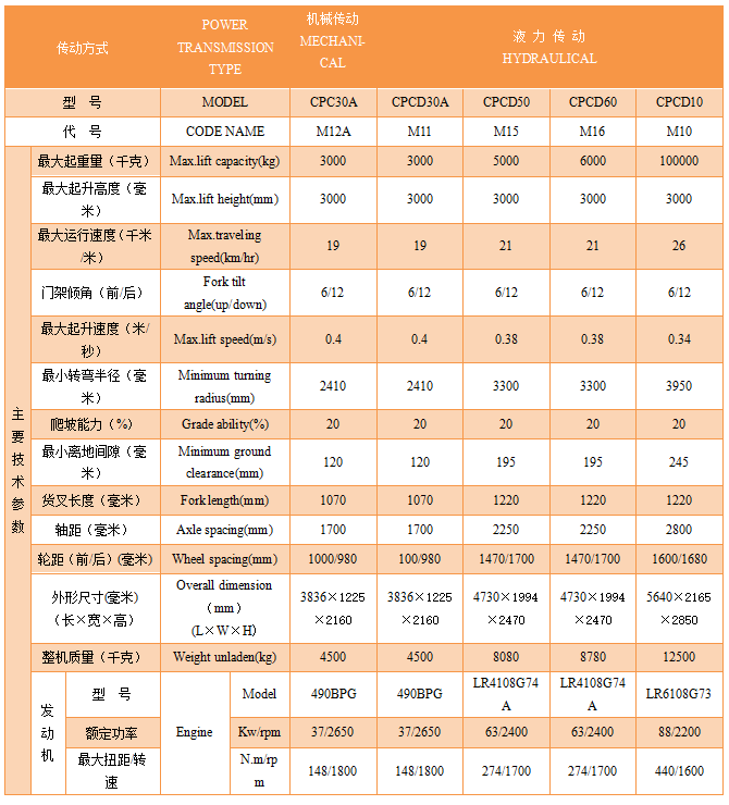 Specification of Inner-Combustion-Engine Counter-Weight Forklift Truck